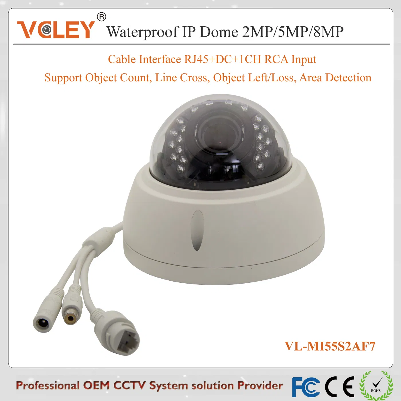 | Alarm function | Network abnomaly, privacy alarm, motion detection |